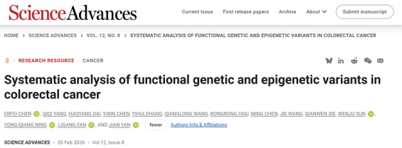 以上成果以“Systematic analysis of functional genetic and epigenetic variants in colorectal cancer”为题,于2月20日在Science Advances上发表。bat365正版唯一官网生命科学与医学部陈尔飞副教授是论文独立第一作者,严健教授是本文通讯作者,研究生杨淇淇、戴浩洋、陈怡欣等以及医学院部分本科生也为研究做出了重要贡献。该研究得到了国家自然科学基金项目、陕西省科技创新团队项目、深圳市医学研究基金项目、香港研究资助局和陕西省基础科学(化学与生物学)研究院经费的支持。