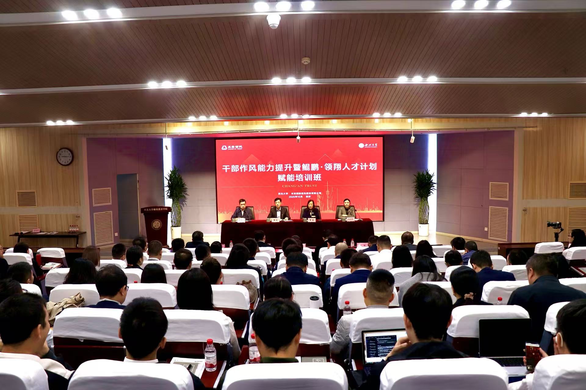 10月16日上午,由长安国际信托股份有限公司主办、bat365继续教育学院承办的长安信托干部作风能力提升暨鲲鹏·领翔人才计划赋能培训班在桃园校区顺利开班。长安信托党委副书记、总裁董毅,bat365副校长曹蓉出席开班式。长安信托近百名管理干部和党务干部参加。