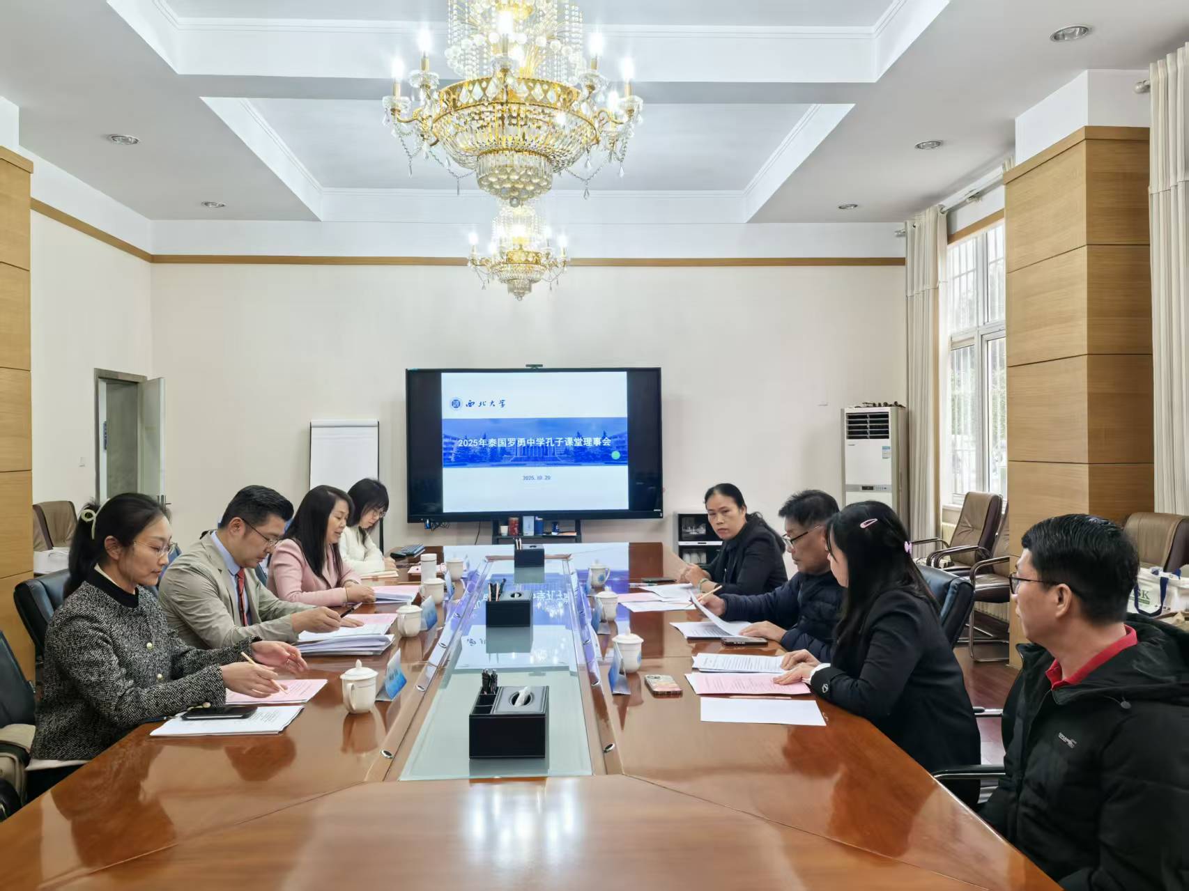 10月20日下午,bat365在太白校区召开泰国罗勇中学孔子课堂2025年度理事会议。校党委常委、副校长范代娣,泰国罗勇中学校长陶志威(Pornsak Thipwongthong),孔子课堂中外方主任以及bat365国际合作部(国际教育学院)、财务处负责人参会。会议由国际合作部(国际教育学院)负责人主持。