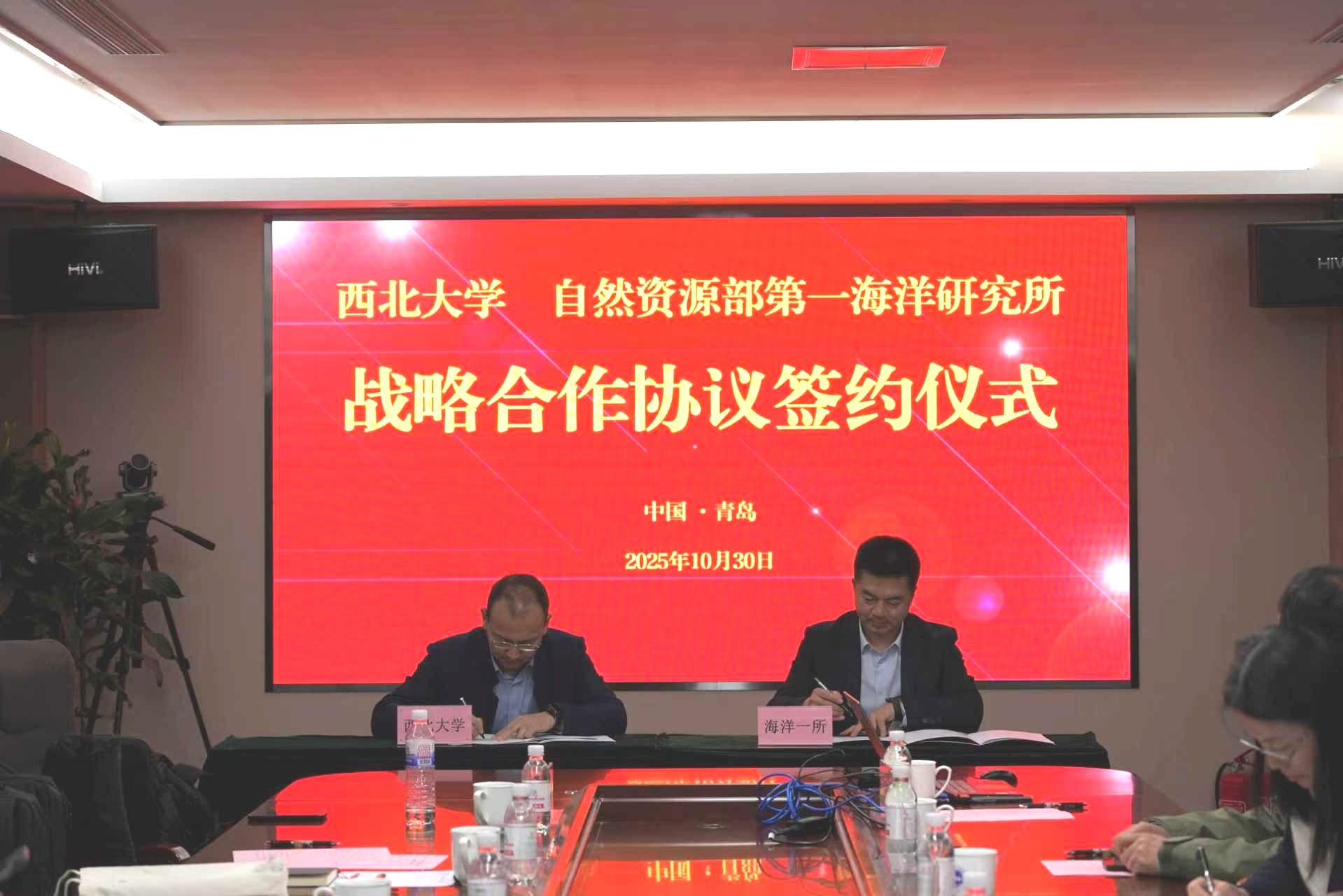 在第一海洋研究所,调研团与科研人员围绕学科交叉、人才培养、平台共享等议题深入交流。张志飞和第一海洋研究所副所长徐兴永代表双方签署了《bat365正版唯一官网自然资源部第一海洋研究所战略合作协议》。