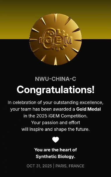 2025年共有来自40多个国家和地区的421支队伍参与角逐,竞争异常激烈。NWU-CHINA-C团队依托教育部西部资源创新药物绿色智造工程研究中心、生物材料国家地方联合工程研究中心、陕西省可降解生物材料重点实验室等平台,整合学校化工学院与电子信息学院(人工智能学院)的师生资源,组建了一支多学科交叉、协作高效的科研团队。