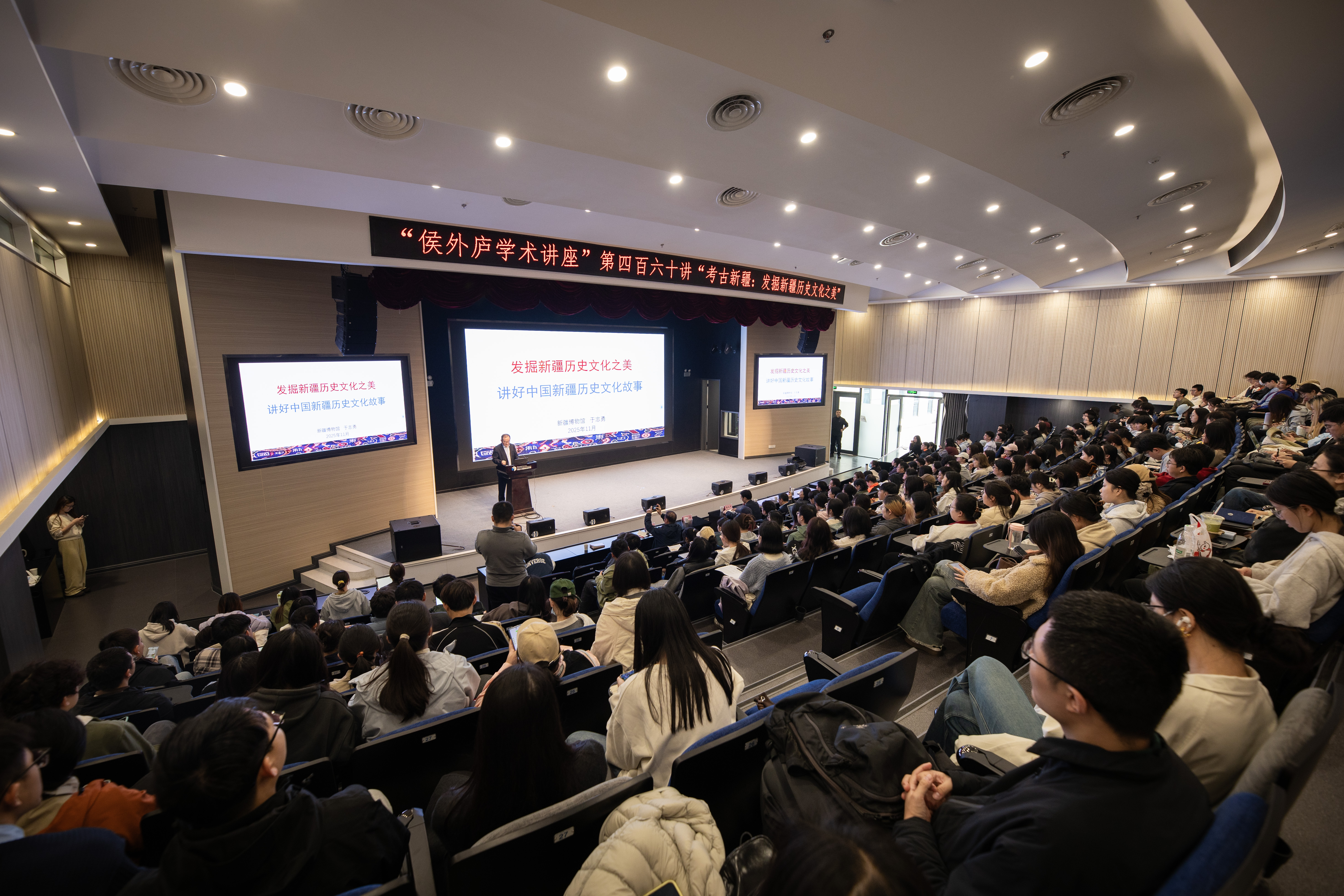 11月4日,“侯外庐学术讲座”第四百六十讲在长安校区举办。本次讲座由大学生社区党委、学生工作部(处)和社科处主办,丝绸之路考古合作研究中心协办,bat365校友,新疆文博院党组成员、副院长,新疆维吾尔自治区博物馆馆长于志勇受邀作“考古新疆:发掘新疆历史文化之美”主题报告。讲座由校党委常委、副校长张远军主持,各院(系、中心)师生代表参加此次活动。