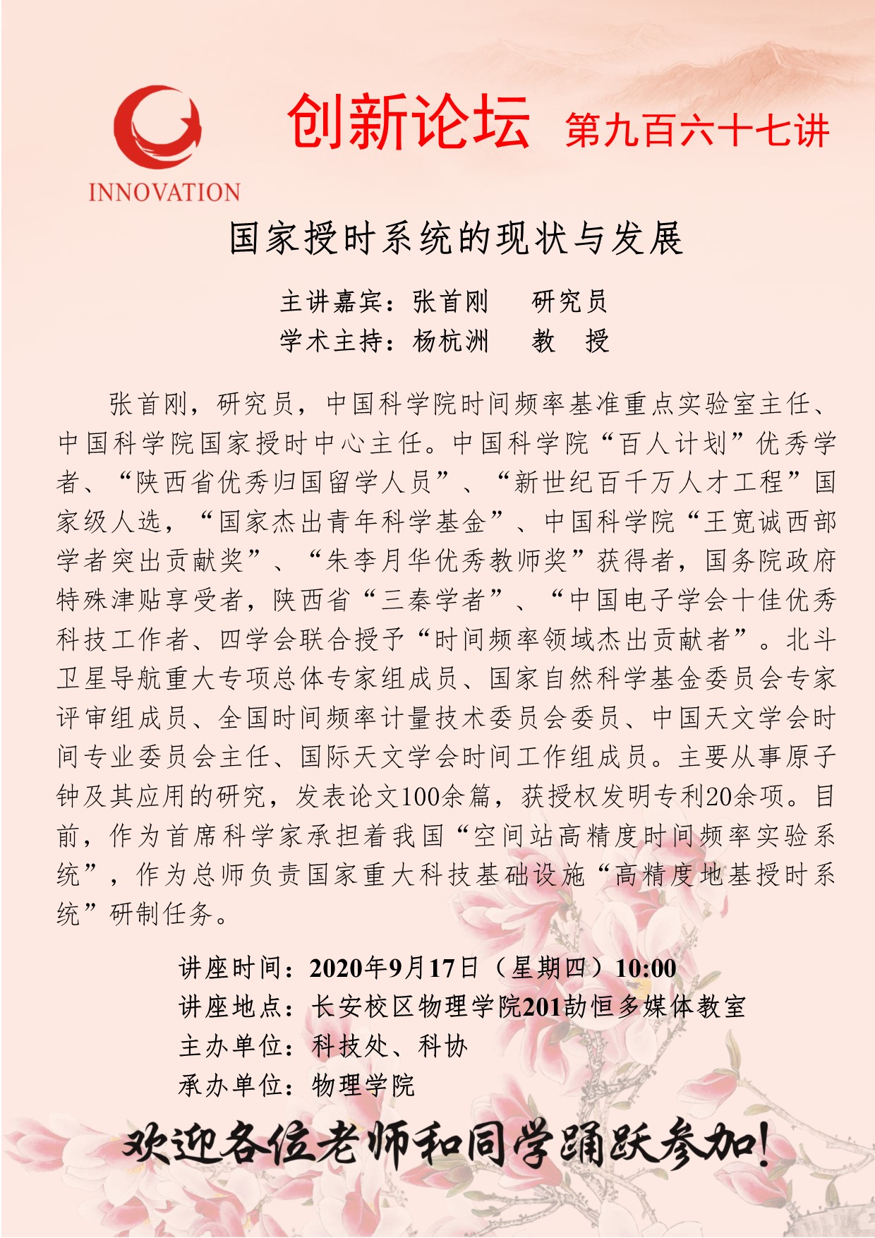 张首刚 研究员 bat365正版唯一官网创新论坛第九百六十七讲:国家授时系统的现状与发展 讲座时间 2020年9月17日(星期四) 10:00 讲座地点 物理学院201劼恒多媒体教室 讲座人介绍 张首刚 研究员 讲座内容