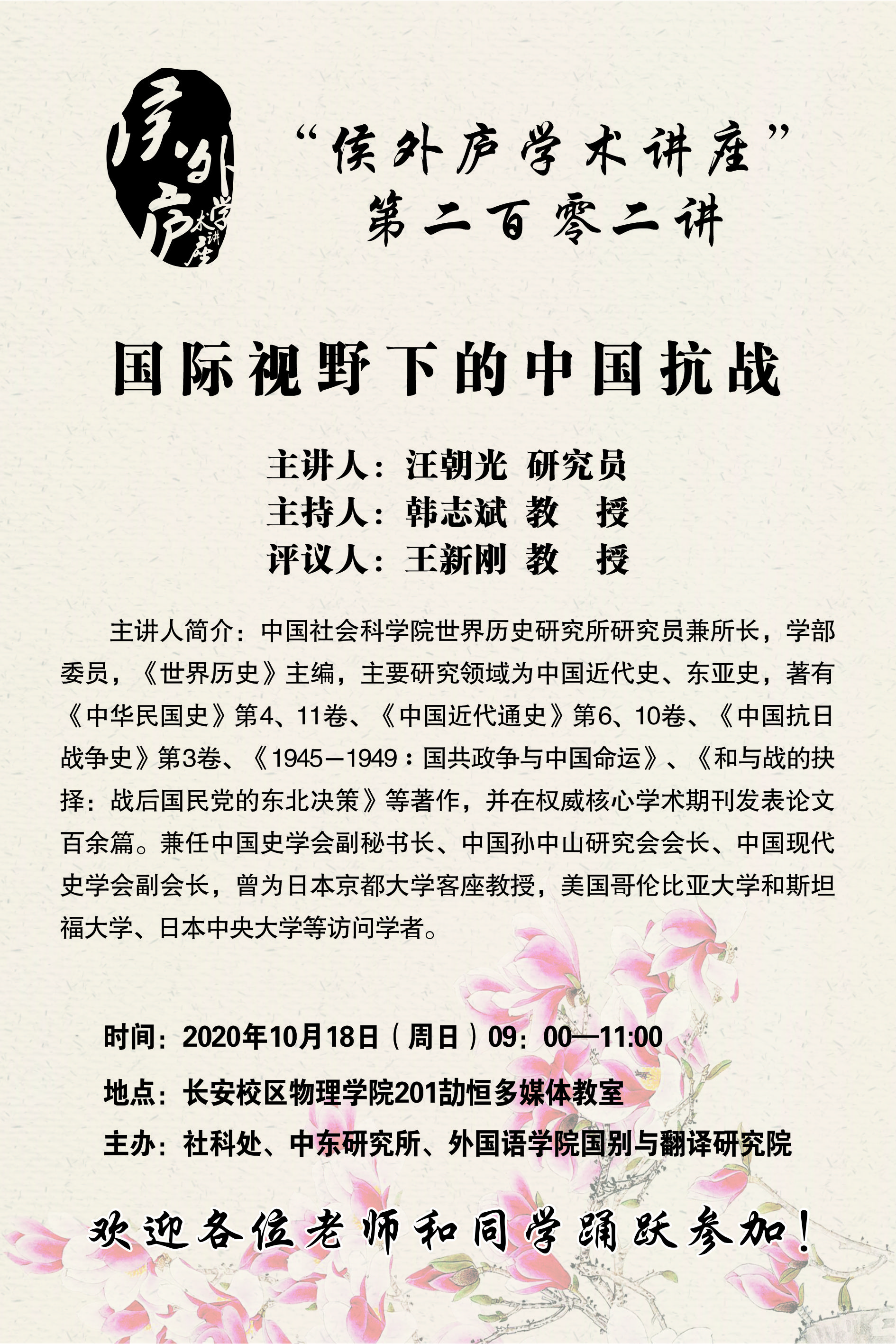 侯外庐学术讲座第二百零二讲:国际视野下的中国抗战