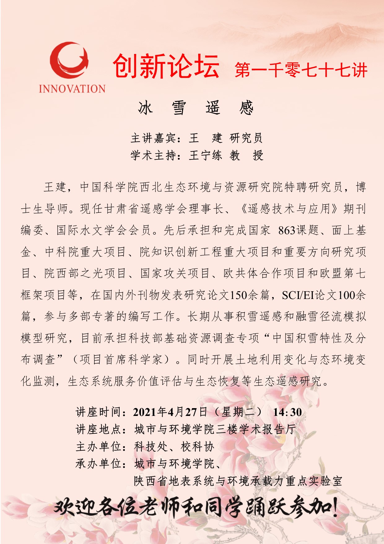 创新论坛 第一千零七十八讲:SAR探测青藏高原冰川变化方法研究