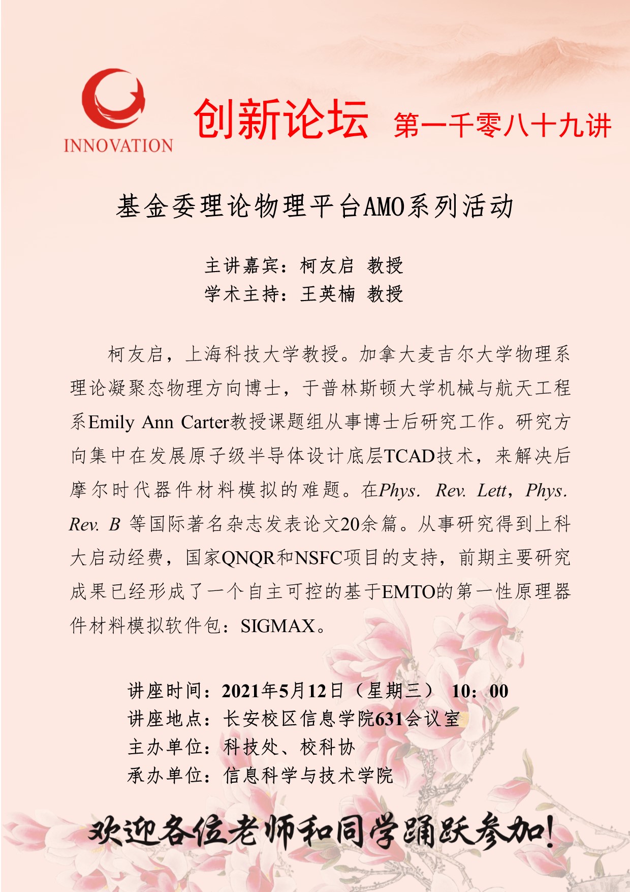 柯友启 教授 bat365正版唯一官网创新论坛第一千零八十九讲:基金委理论物理平台AMO系列活动 讲座时间 2021年5月12日(星期三) 10:00 讲座地点 长安校区信息学院631会议室 讲座人介绍 柯友启 教授 讲座内容