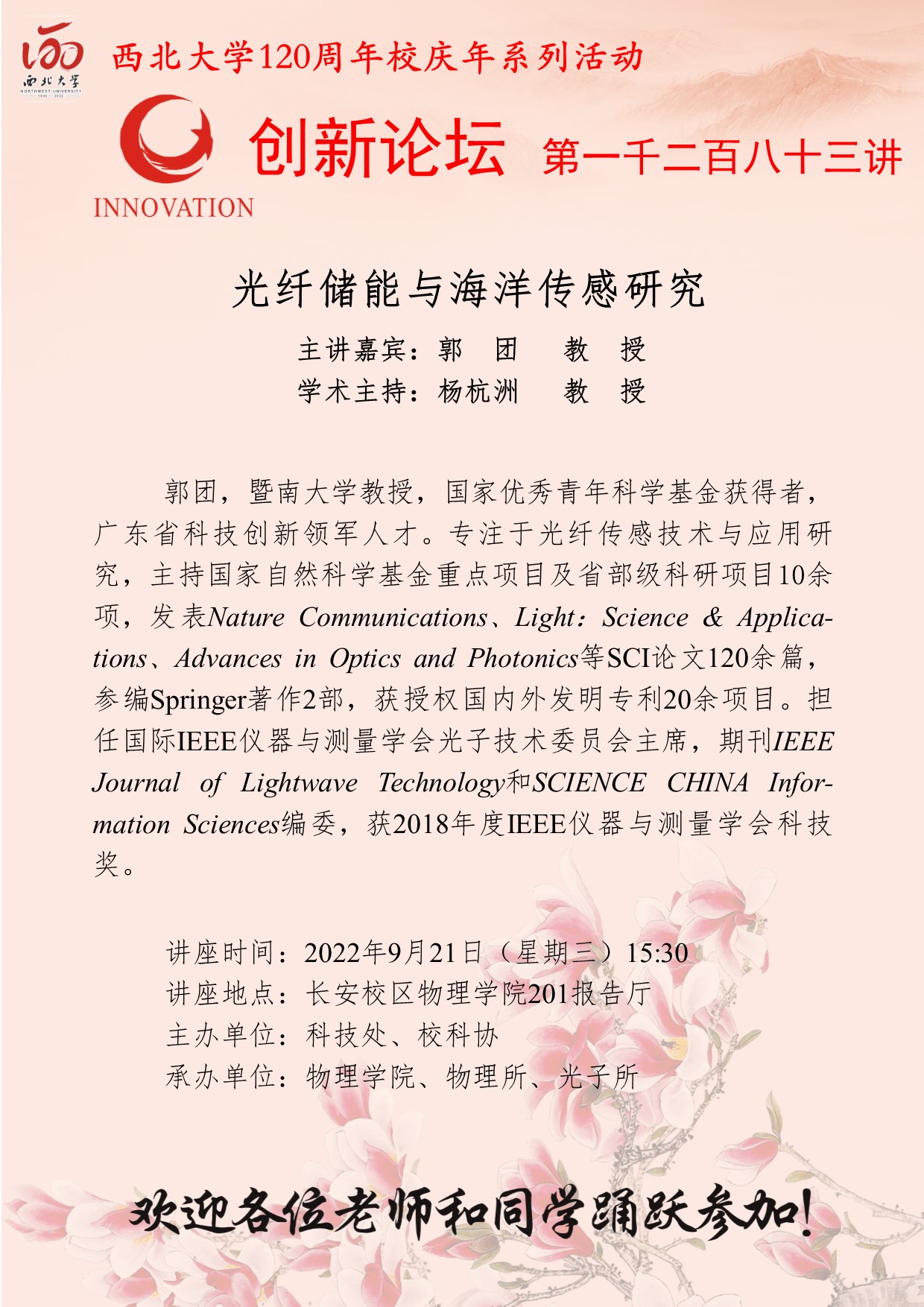 郭团 教授 bat365正版唯一官网创新论坛第一千二百八十三讲暨120周年校庆年系列活动::光纤储能与海洋传感研究 讲座时间 2022年9月21日(星期三) 15:30 讲座地点 物理学院201报告厅 讲座人介绍 郭团 教授 讲座内容