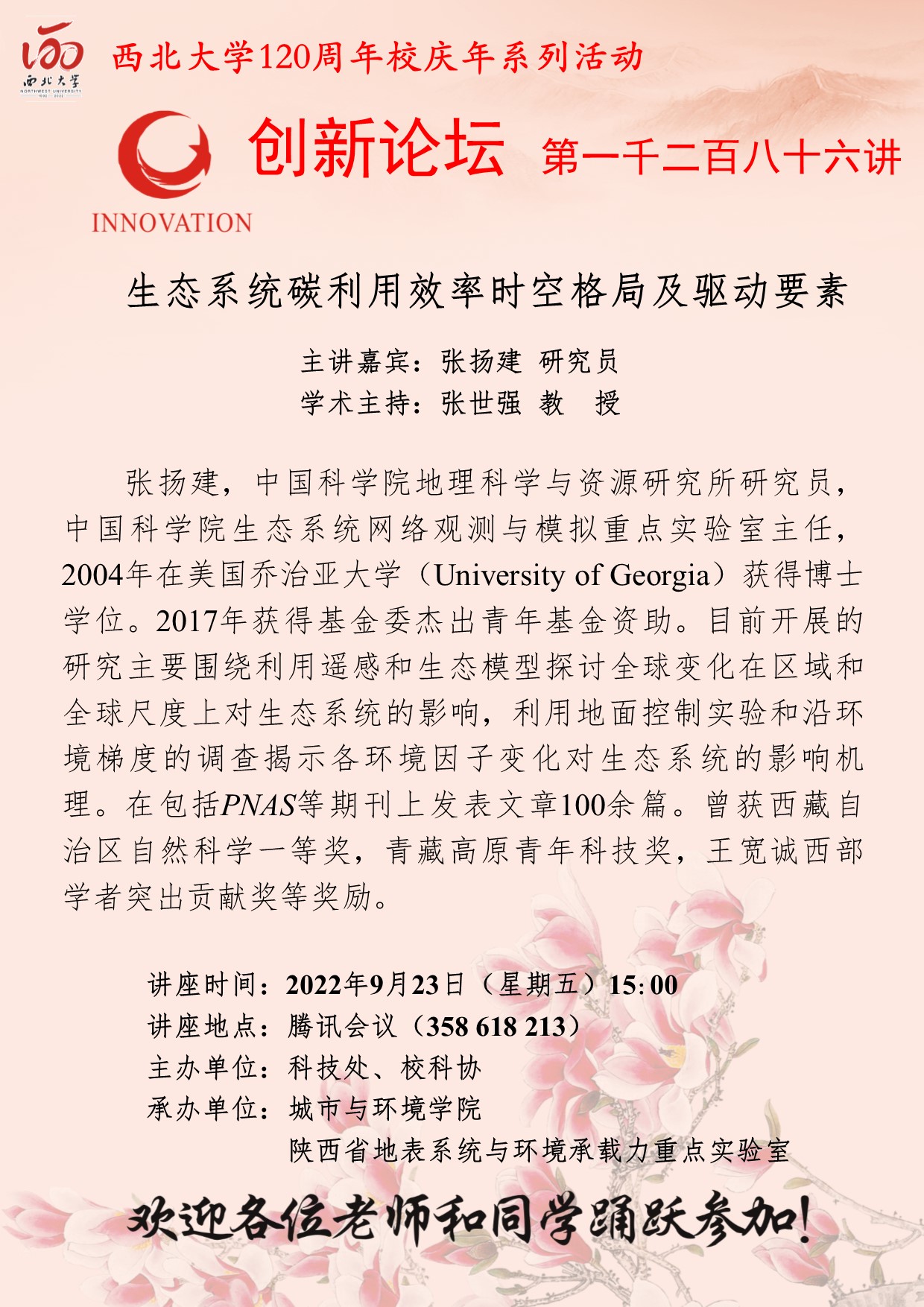 张扬建 研究员 bat365正版唯一官网创新论坛第一千二百八十六讲暨120周年校庆年系列活动::生态系统碳利用效率时空格局及驱动要素 讲座时间 2022年9月23日(星期五)15:00 讲座地点 腾讯会议(358 618 213) 讲座人介绍 张扬建 研究员 讲座内容