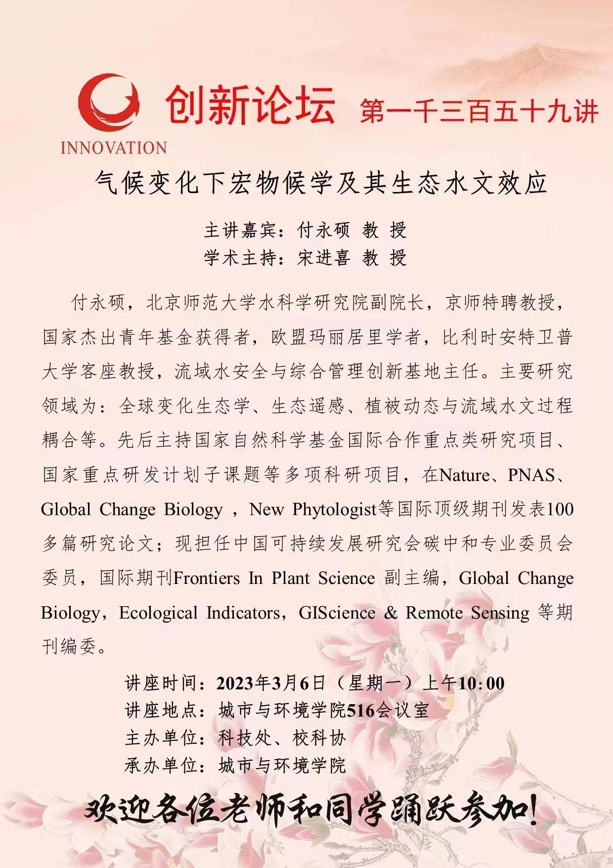 bat365正版唯一官网创新论坛第一千三百五十九讲:气候变化下宏物候学及生态水文效应