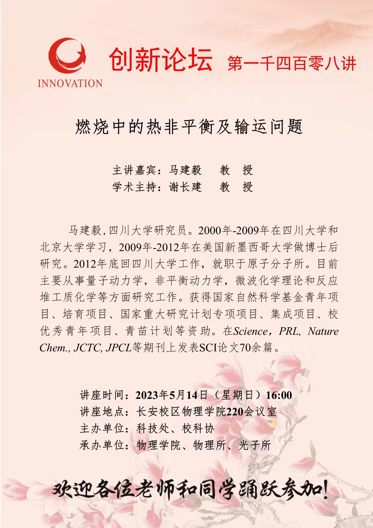马建毅 教 授 bat365正版唯一官网创新论坛第一千四百零八讲:燃烧中的热非平衡及输运问题 讲座时间 2023年5月14日(星期日)16:00 讲座地点 长安校区物理学院220会议室 讲座人介绍 马建毅 教 授 讲座内容