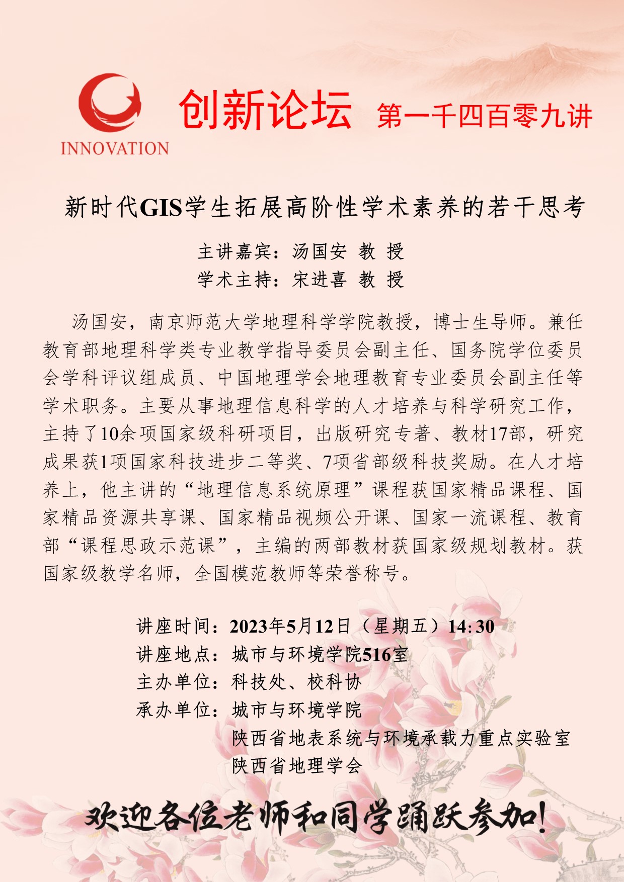 汤国安 教授 bat365正版唯一官网创新论坛第一千四百零九讲:新时代GIS学生拓展高阶性学术素养的若干思考 讲座时间 2023年5月12日(星期五)14:30 讲座地点 城市与环境学院516室 讲座人介绍 汤国安 教授 讲座内容