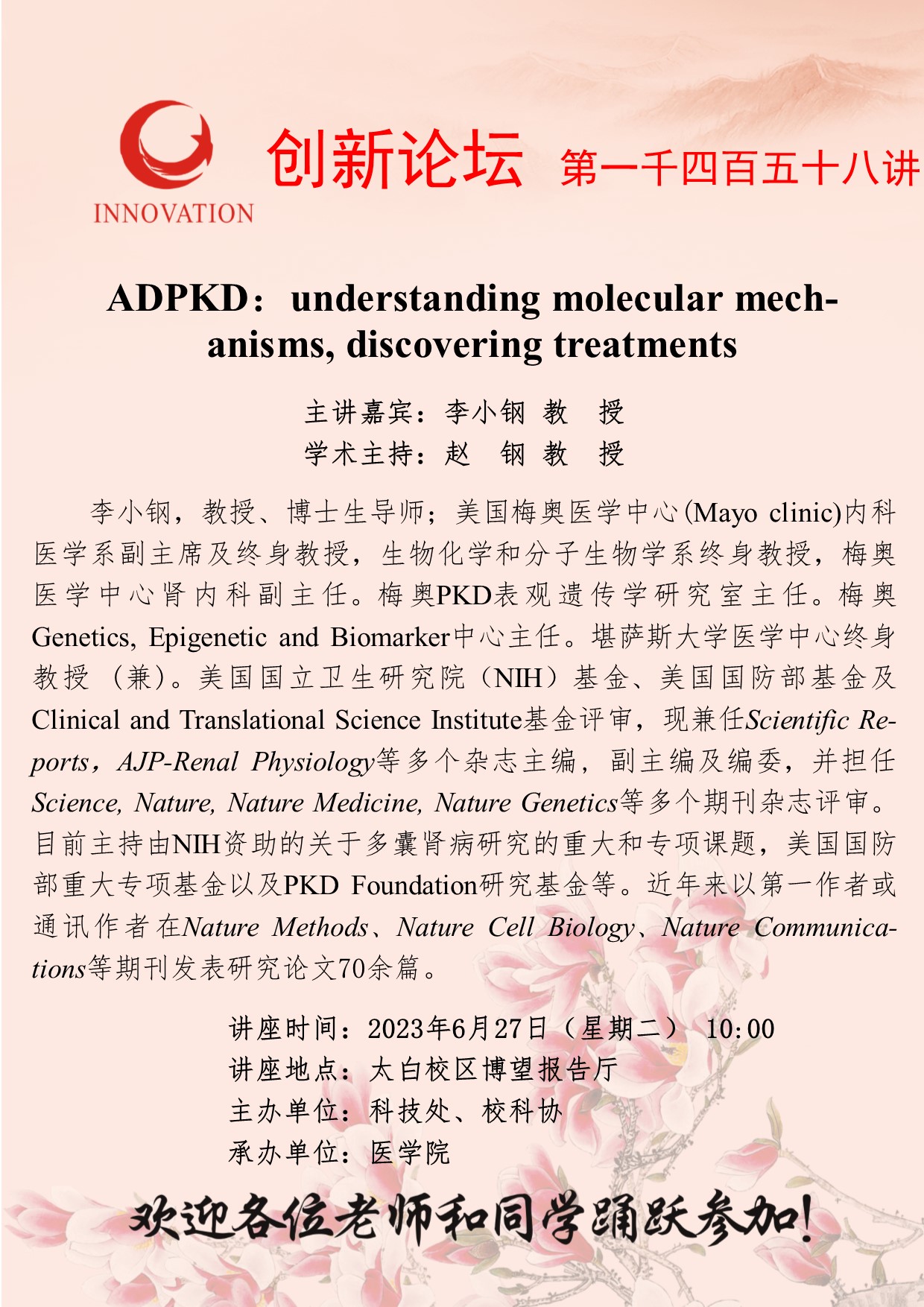 李小钢 教 授 bat365正版唯一官网创新论坛第一千四百五十八讲:ADPKD:understanding molecular mechanisms, discovering treatments 讲座时间 2023年6月27日(星期二) 10:00 讲座地点 太白校区博望报告厅 讲座人介绍 李小钢 教 授 讲座内容