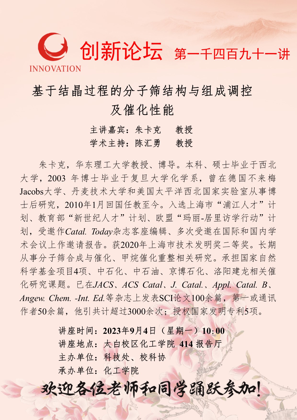 朱卡克 教授 bat365正版唯一官网创新论坛第一千四百九十一讲:基于结晶过程的分子筛结构与组成调控及催化性能 讲座时间 2023年9月4日(星期一)10:00 讲座地点 太白校区化工学院414报告厅 讲座人介绍 朱卡克 教授 讲座内容