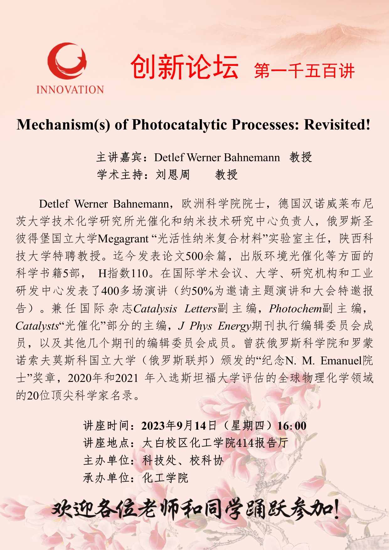 Detlef Werner Bahnemann 教授 bat365正版唯一官网创新论坛第一千五百讲:Mechanism(s) of Photocatalytic Processes: Revisited! 讲座时间 2023年9月14日(星期四)16:00 讲座地点 太白校区化工学院414报告厅 讲座人介绍 Detlef Werner Bahnemann 教授 讲座内容