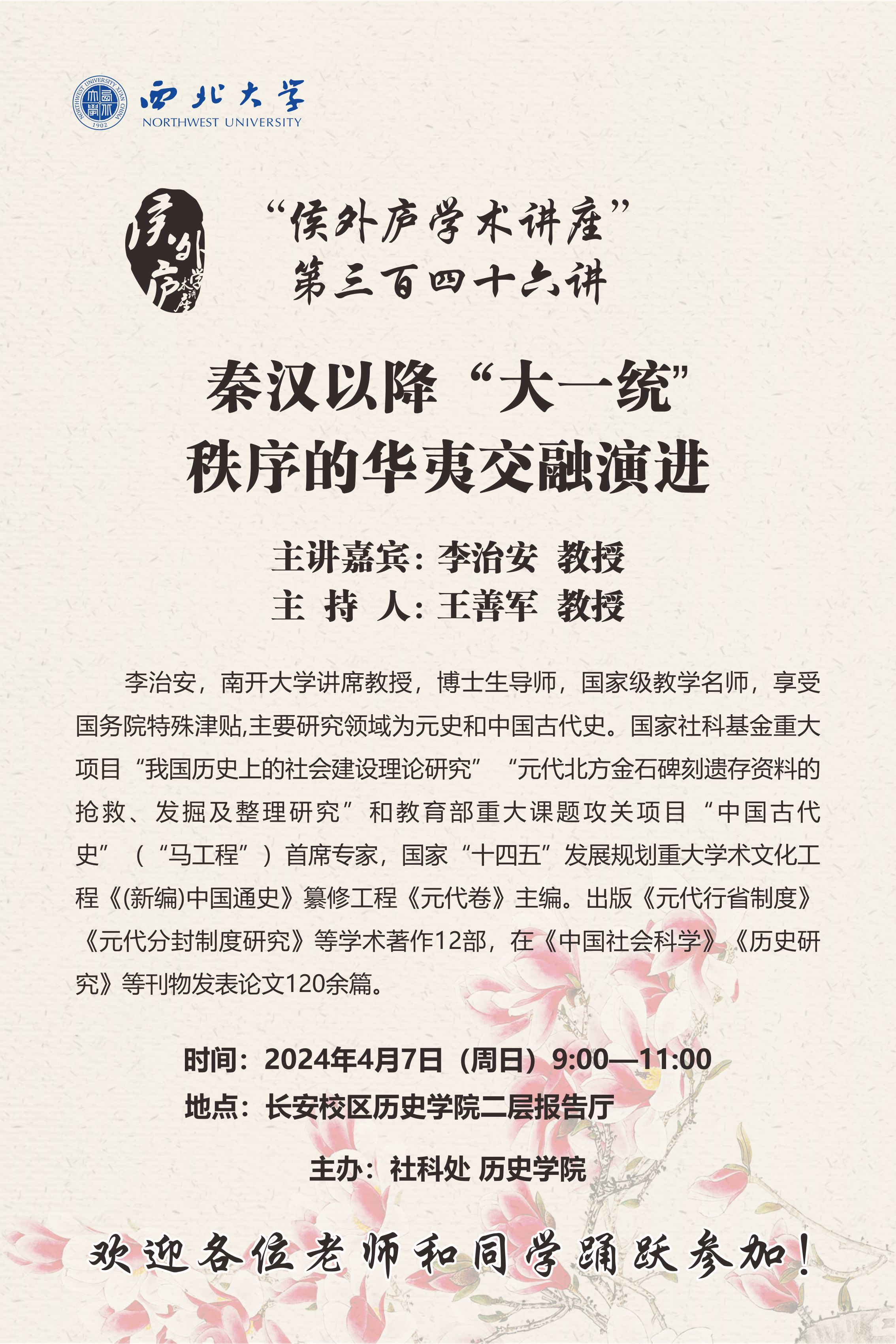 侯外庐学术讲座第三百四十六讲:秦汉以降“大一统”秩序的华夷交融演进