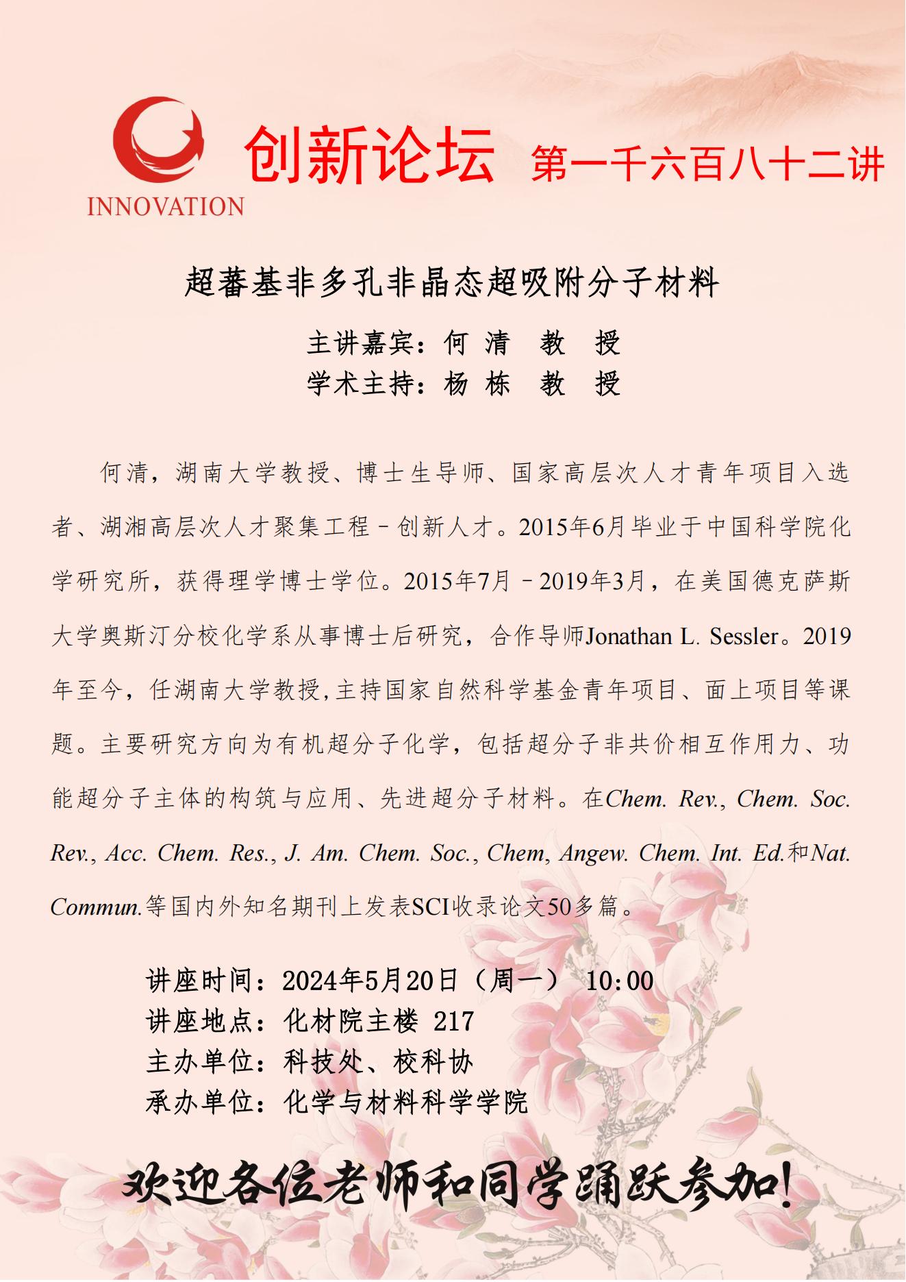何清 教授 bat365正版唯一官网创新论坛第一千六百八十二讲:超蕃基非多孔非晶态超吸附分子材料 讲座时间 2024年5月20日(星期一) 10:00 讲座地点 长安校区化材院主楼 217 讲座人介绍 何清 教授 讲座内容