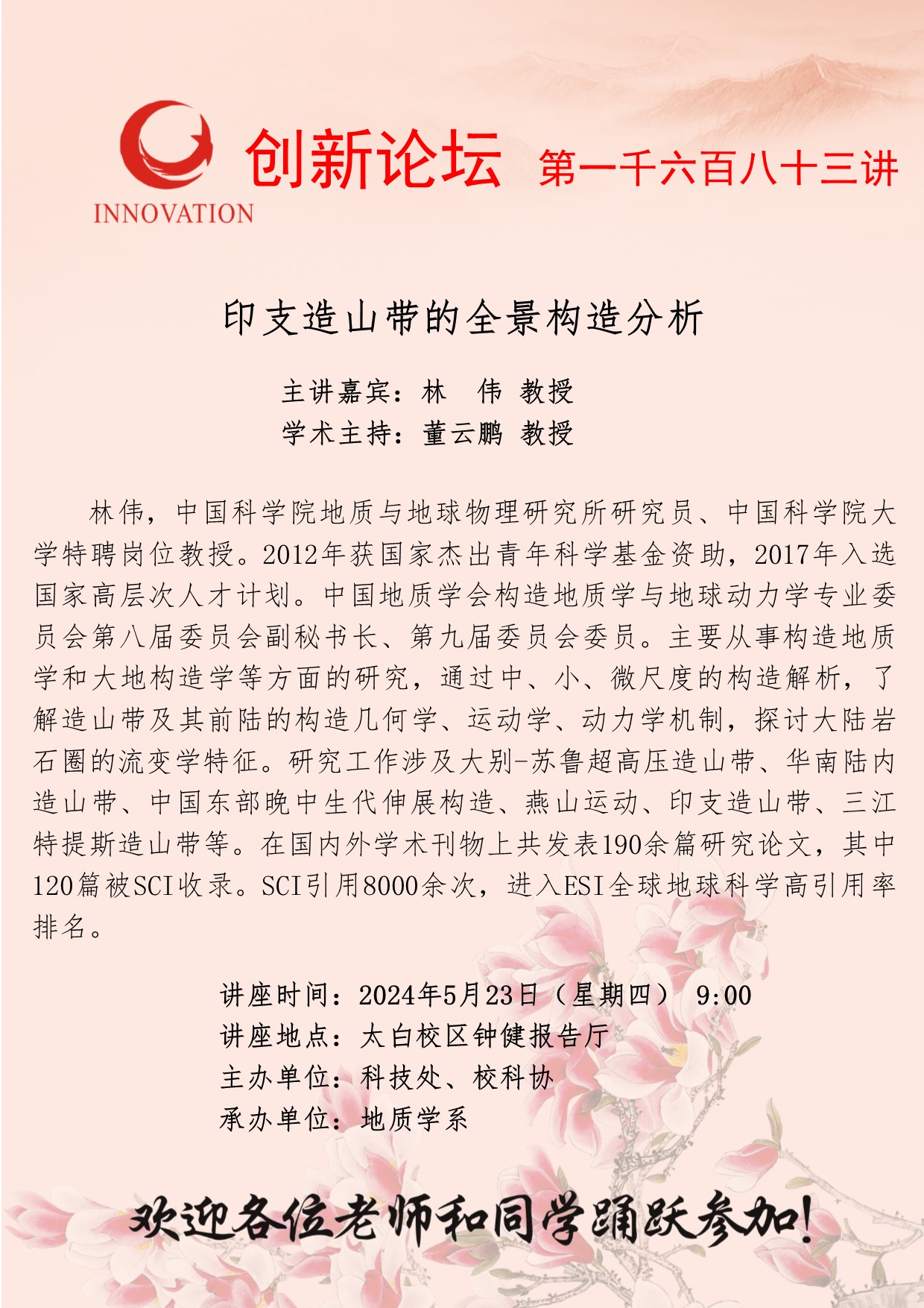 林 伟 教授 bat365正版唯一官网创新论坛第一千六百八十三讲:印支造山带的全景构造分析 讲座时间 2024年5月23日(星期四) 9:00 讲座地点 太白校区钟健报告厅 讲座人介绍 林 伟 教授 讲座内容