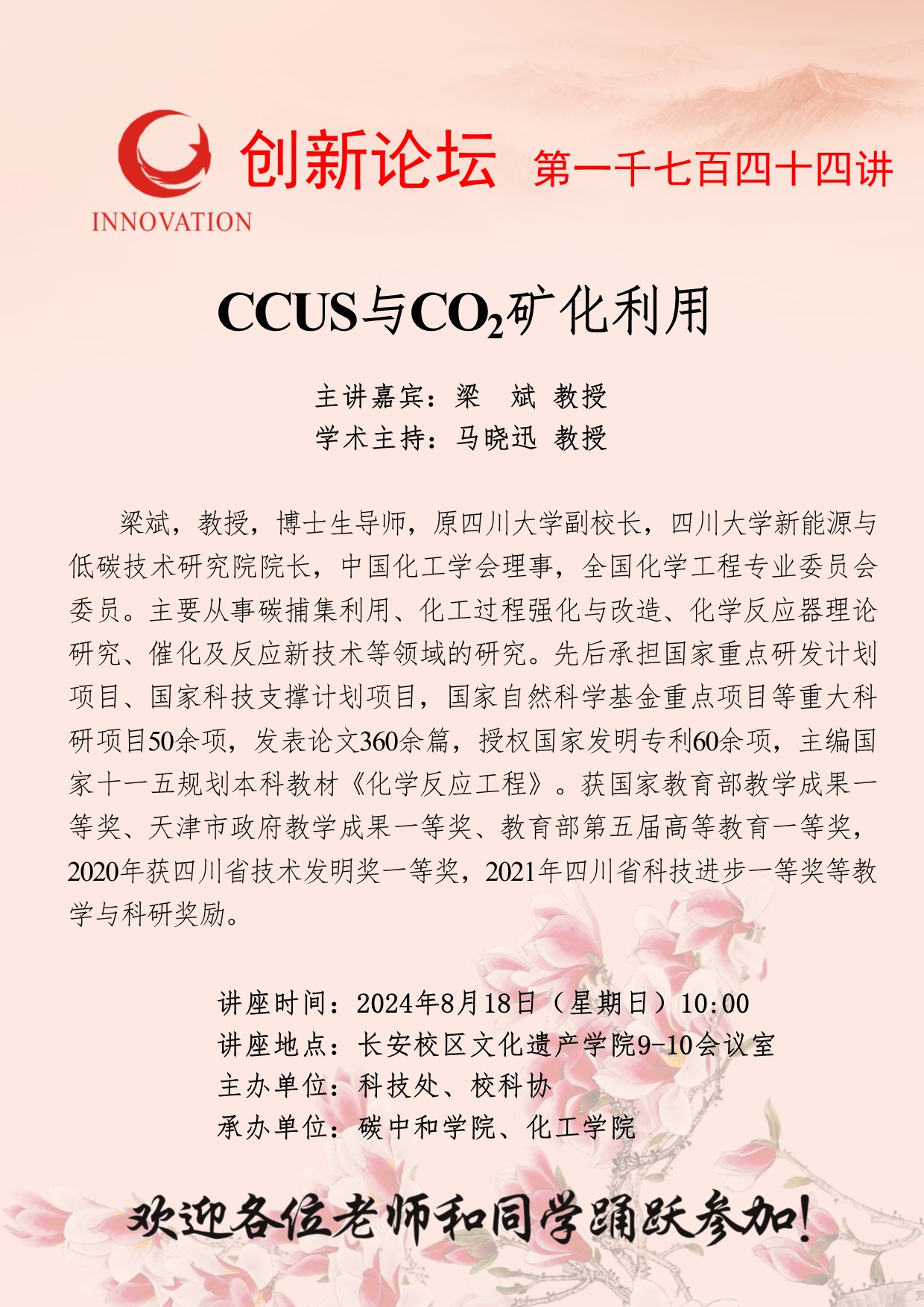 梁斌 教授 bat365正版唯一官网创新论坛第一千七百四十四讲:CCUS与CO2矿化利用 讲座时间 2024年8月18日(星期日)10:00 讲座地点 长安校区文化遗产学院9-10会议室 讲座人介绍 梁斌 教授 讲座内容
