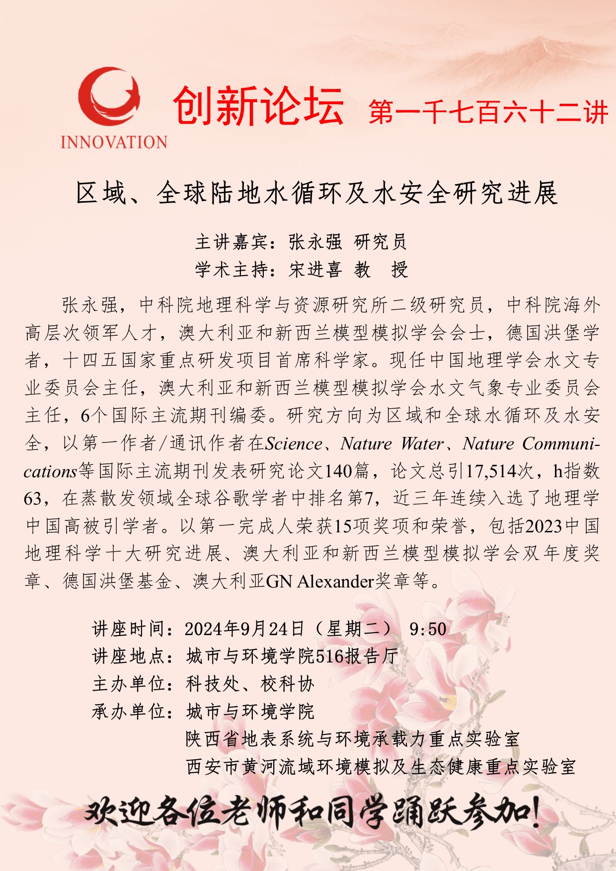 张永强 研究员 bat365正版唯一官网创新论坛第一千七百六十二讲:区域、全球陆地水循环及水安全研究进展 讲座时间 2024年9月24日(星期二) 9:50 讲座地点 城市与环境学院516报告厅 讲座人介绍 张永强 研究员 讲座内容