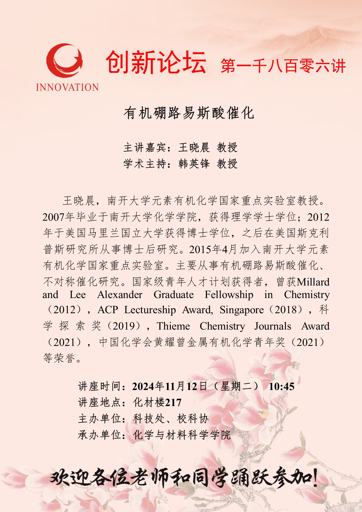 bat365正版唯一官网创新论坛第一千八百零六讲:有机硼路易斯酸催化