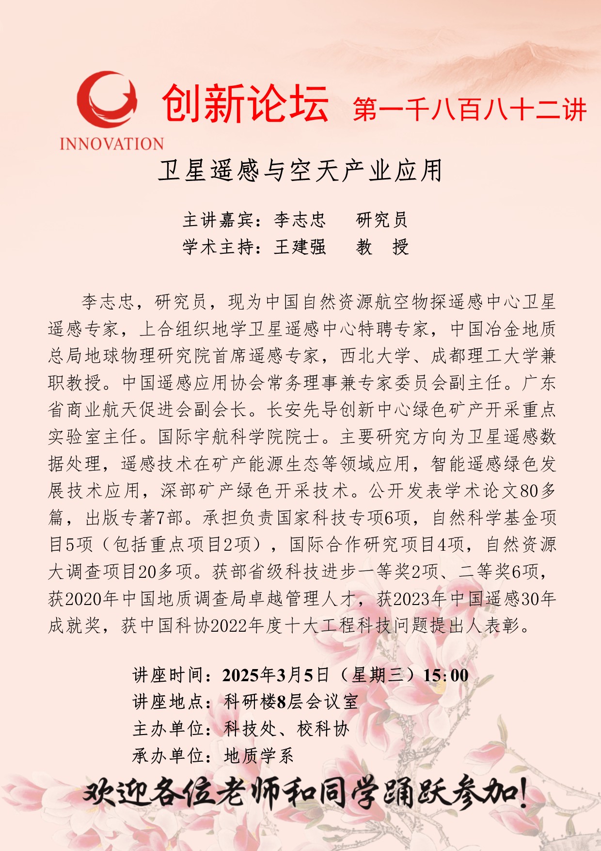 李志忠 研究员 bat365正版唯一官网创新论坛第一千八百八十二讲:卫星遥感与空天产业应用 讲座时间 2025年3月5日(星期三)15:00 讲座地点 科研楼8层会议室 讲座人介绍 李志忠 研究员 讲座内容