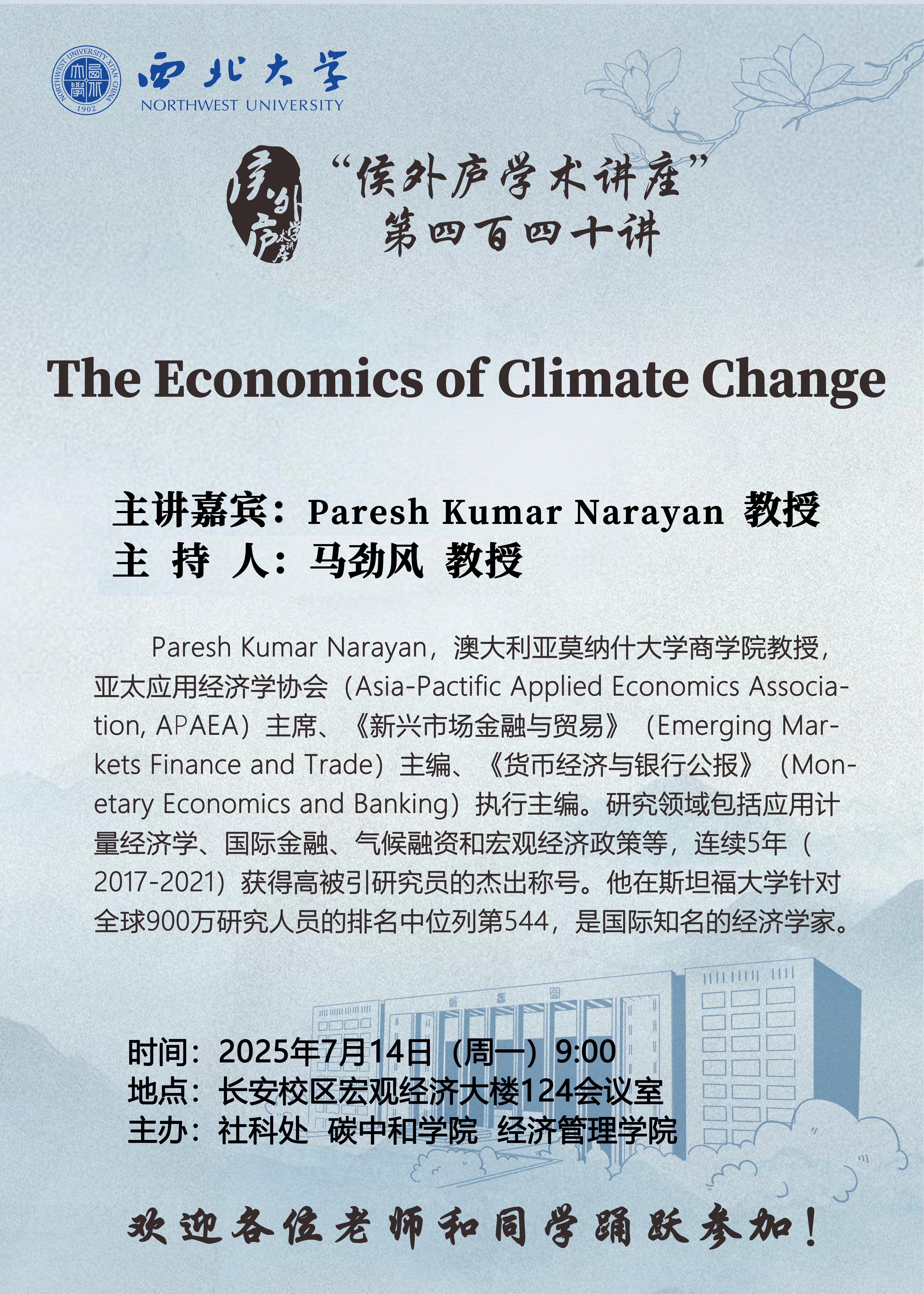 “侯外庐学术讲座”第四百四十讲:The Economics of Climate Change