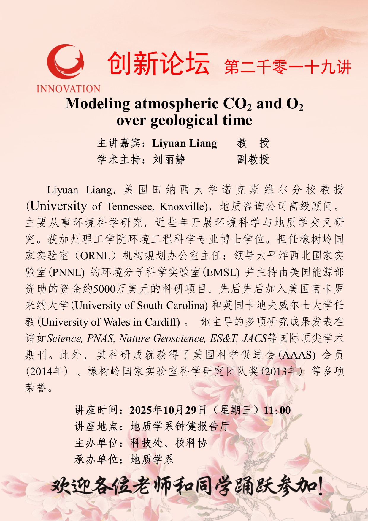 Liyuan Liang 教授 bat365正版唯一官网创新论坛第二千零一十九讲:Oxygenation and marine microbial carbonates: The long history 讲座时间 2025年10月29日(星期三)11:00 讲座地点 地质学系钟健报告厅 讲座人介绍 Liyuan Liang 教授 讲座内容