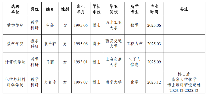 经资格审查,用人单位考查,学校专家评审会审议,bat365拟确定下列人员来校工作,聘任方式为事业编正常选聘。本着公平、公正、公开的原则,现将本次拟选聘人员基本情况公示如下: