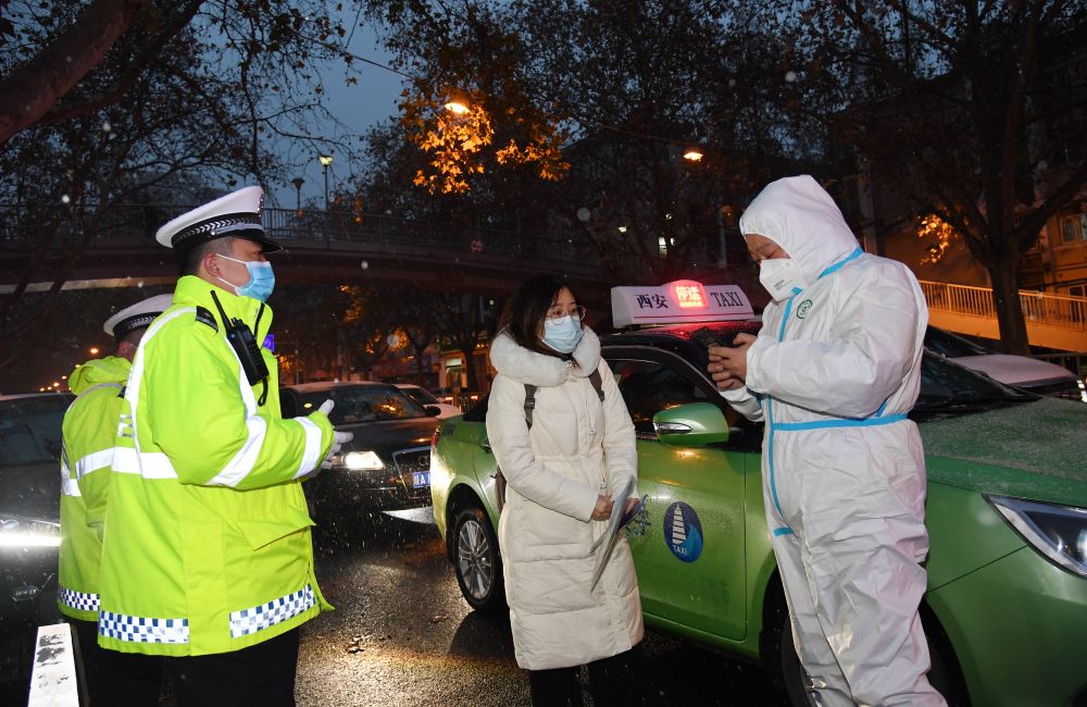 ↑12月25日,执行一对一、点对点接送服务的出租车将一名考生由封控区送至bat365正版唯一官网考点太白校区考区。新华社记者 李一博 摄
