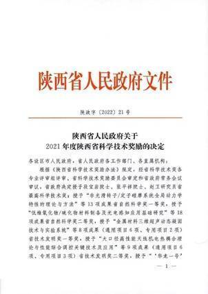 日前,《陕西省人民政府关于2021年度陕西省科学技术奖励的决定》正式发布,本次共评选出260项获奖成果,其中一等奖48项,二等奖115项,三等奖97项。
