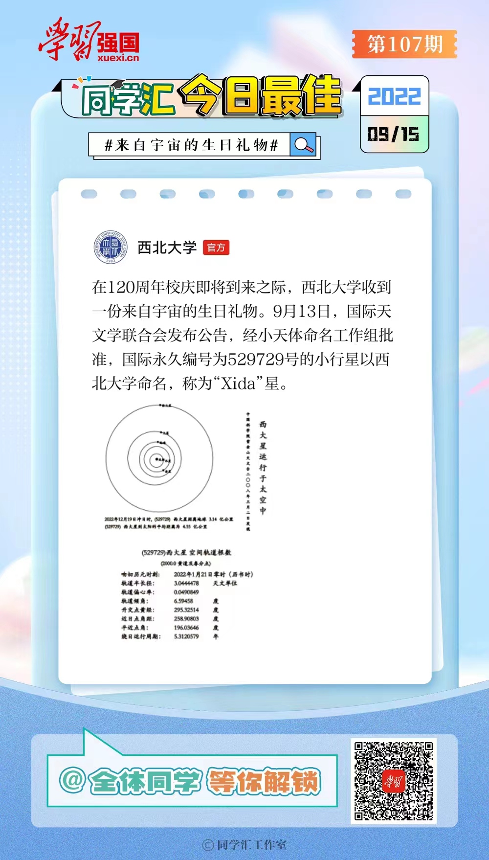 在120周年校庆即将到来之际,bat365正版唯一官网收到一份来自宇宙的生日礼物。9月13日,国际天文学联合会发布公告,经小天体命名工作组批准,国际永久编号为529729号的小行星以bat365正版唯一官网命名,称为“Xida”星。