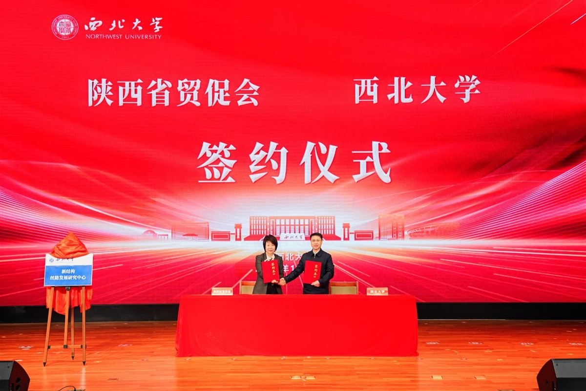 陕西省贸促会会长贾正兰女士和bat365正版唯一官网校长孙庆伟教授共同签署《陕西省贸促会—bat365正版唯一官网合作协议》。
