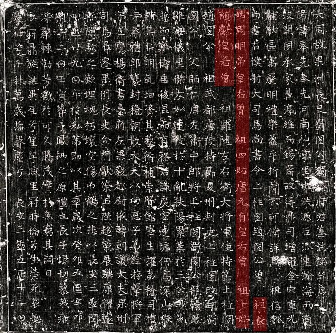 在这些独孤家族后裔的墓志中,有的详细记载了三位皇后的朝代、谥号和家族行第等信息,如独孤藏墓志文“周明皇帝敬后同母弟”。独孤瑛墓志文“长女,周明帝皇后;第四女,皇祖妣元贞皇后;第七女,隋献皇后。”陇西郡君独孤夫人墓志铭记载“大唐高祖妣元贞皇后之祑孙”。独孤昱墓志文显示“周明帝敬皇后、隋文帝献皇后、大唐元皇帝元贞皇后并梁王之女,公之五代祖姑,三代后族,诞圣伣天,累朝宠光,绝世超古”。