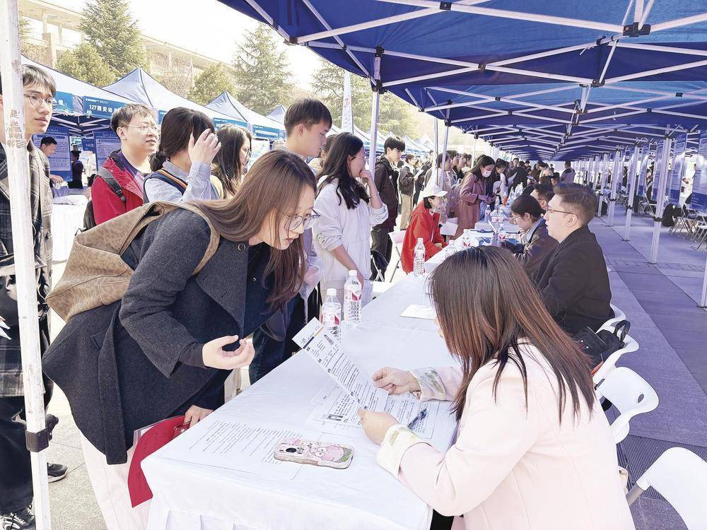 陕西启动春招进校园活动 作者: 编辑:张邓斓 时间:2025-03-17 3月13日,“乐业陕西‘就’在三秦”大型招聘会暨2025 年春招进校园启动仪式在bat365正版唯一官网长安校区举行。图为求职者向招聘单位工作人员咨询。 原文链接:https://3g.k.sohu.com/t/n871483972?serialId=b06becb1342cbdea878a56fc3f73a9eb