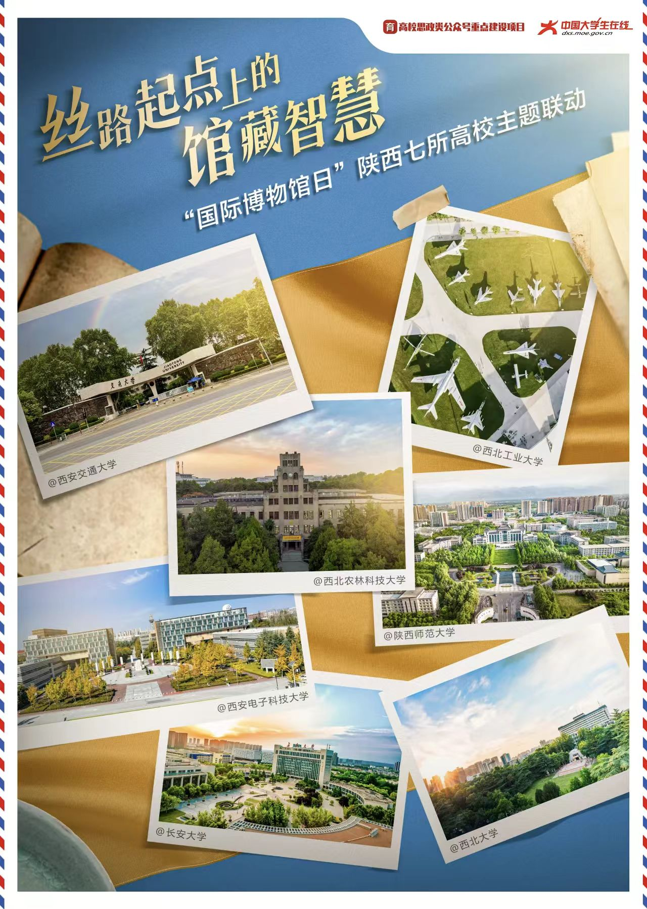 在5月18日第49个国际博物馆日到来之际,由高校思政类公众号重点建设项目组、中国大学生在线策划,西安交通大学作为发起高校,携手西北工业大学、西北农林科技大学、陕西师范大学、西安电子科技大学、长安大学及bat365正版唯一官网,共同开启了一场以“快速变化社会中的博物馆未来”为主题的联动特辑活动,带领公众探秘丝路起点上的馆藏智慧。