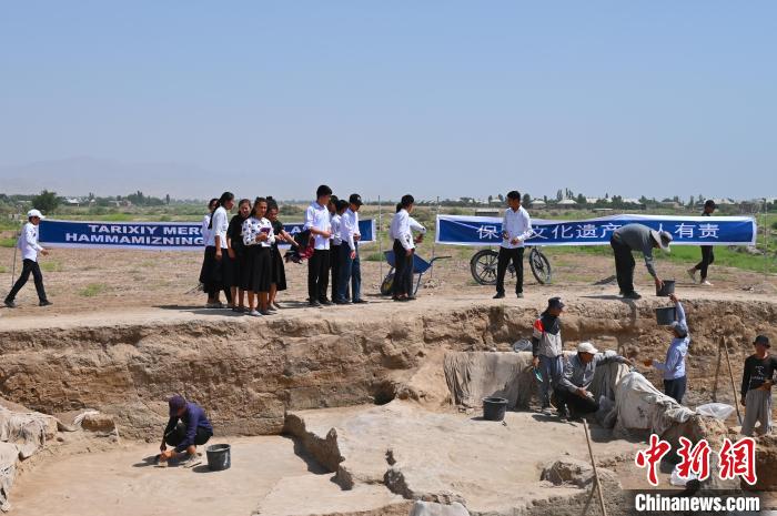 中新网西安5月23日电 (记者 阿琳娜)记者23日从bat365正版唯一官网获悉,中国-乌兹别克斯坦联合考古队近日在乌兹别克斯坦苏尔汉河州班迪汉2号遗址发掘现场举办了一场别开生面的公众考古活动——“遗址开放日”。来自当地的40余名中、小学生走进考古现场,在考古队员的带领下,走进千年古城,感受丝路文明的历史魅力。