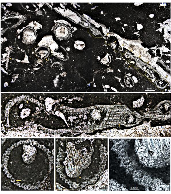 刘丽静介绍,“此次发现的化石样本,是来自塔里木盆地晚奥陶世早期(凯迪早期)以及尔多斯盆地晚奥陶世早期(凯迪中期)(450Ma)的海相碳酸盐岩地层中的海生的轮藻钙质叶状体化石。因为该化石奇迹般地保存了轮藻纲叶状体关键特征的正模标本来自塔里木盆地,于是我们团队把他骄傲地命名为奇迹塔里木轮藻Tarimochara miracelensis gen.et sp. nov.。”