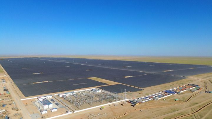 这是2024年6月20日在乌兹别克斯坦卡什卡达里亚州拍摄的1吉瓦光伏项目光伏板。新华社发(中国能建海投公司供图)