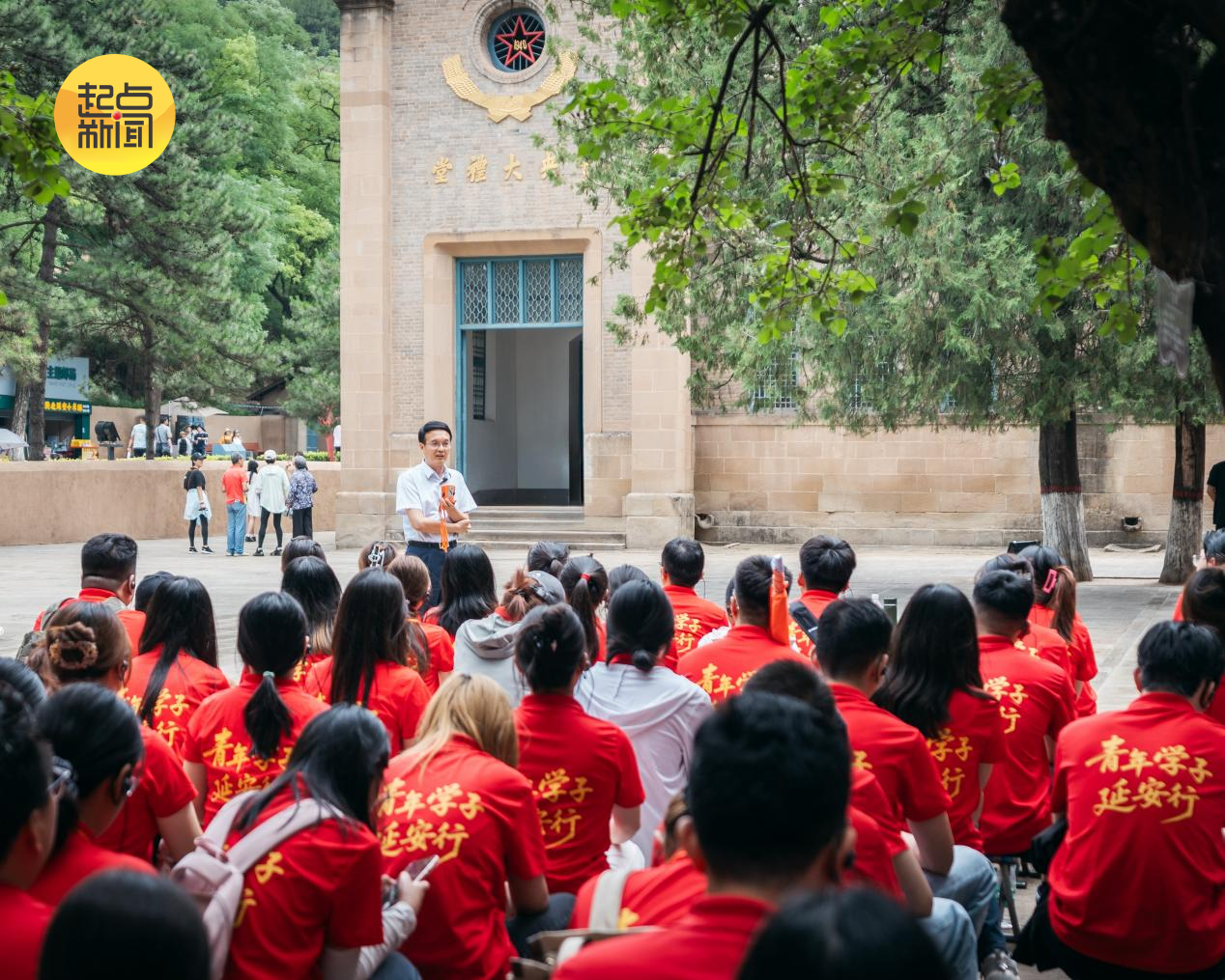 在延安的第一课是专题教学,研学团在延安大学图书馆,聆听了主题为“弘扬延安精神,争做‘有理想、敢担当、能吃苦、肯奋斗’的新时代好青年”的报告。随后,研学团还先后参观了延安革命纪念馆、王家坪革命旧址、杨家岭革命旧址、枣园革命旧址等,大家透过一件件文物、一张张照片重温历史,在现场教学中感受具象化的延安精神。