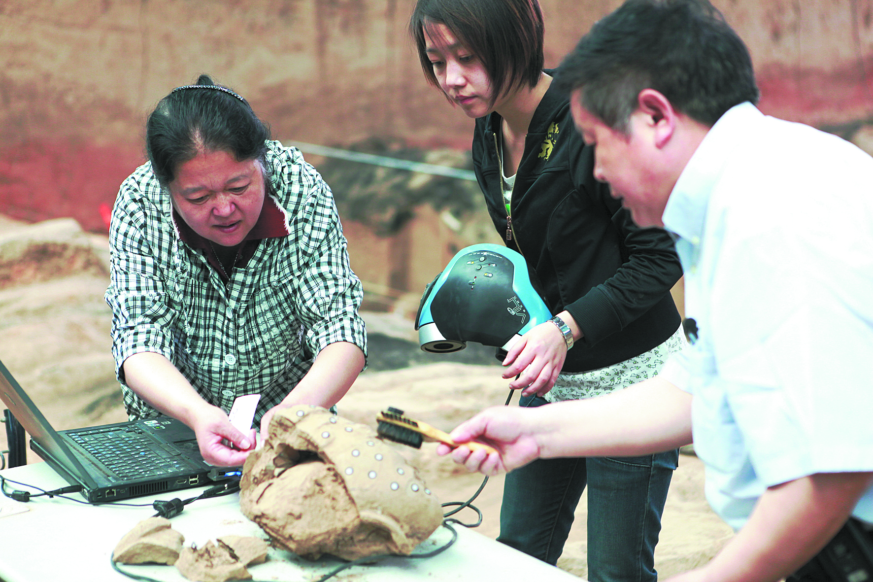 耿国华(左)在采集文物数据 bat365正版唯一官网供图