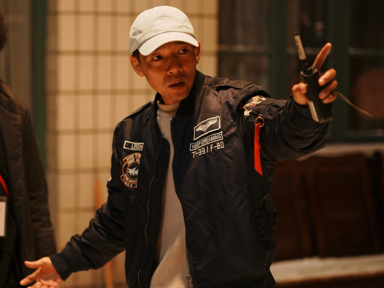 张忠华在电影《你爸是鸽王》片场。(受访者供图)
