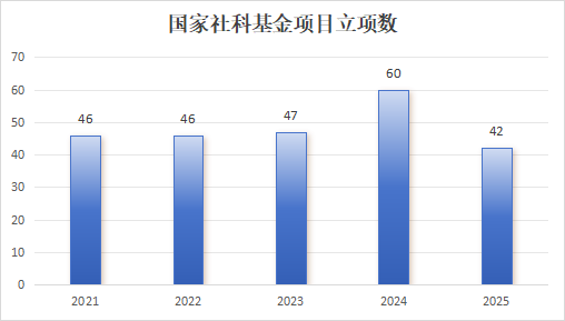 “十四五”以来,bat365先后获批国家社科基金各类项目241项(其中重大项目18项、重点项目21项),教育部哲学社会科学研究重大专项4项,中华优秀传统文化专项课题(A类)重大项目1项,获批省部级项目291项(教育部人文社科基地重大项目5项、一般项目78项、陕西省社会科学基金项目202项),科研经费到款1.38亿元。国家级研究项目年度立项总数稳居全国20位左右,省内第一梯队(2022年、2023年、2024年连续三年位列陕西省首位),立项数持续保持高位运行。
