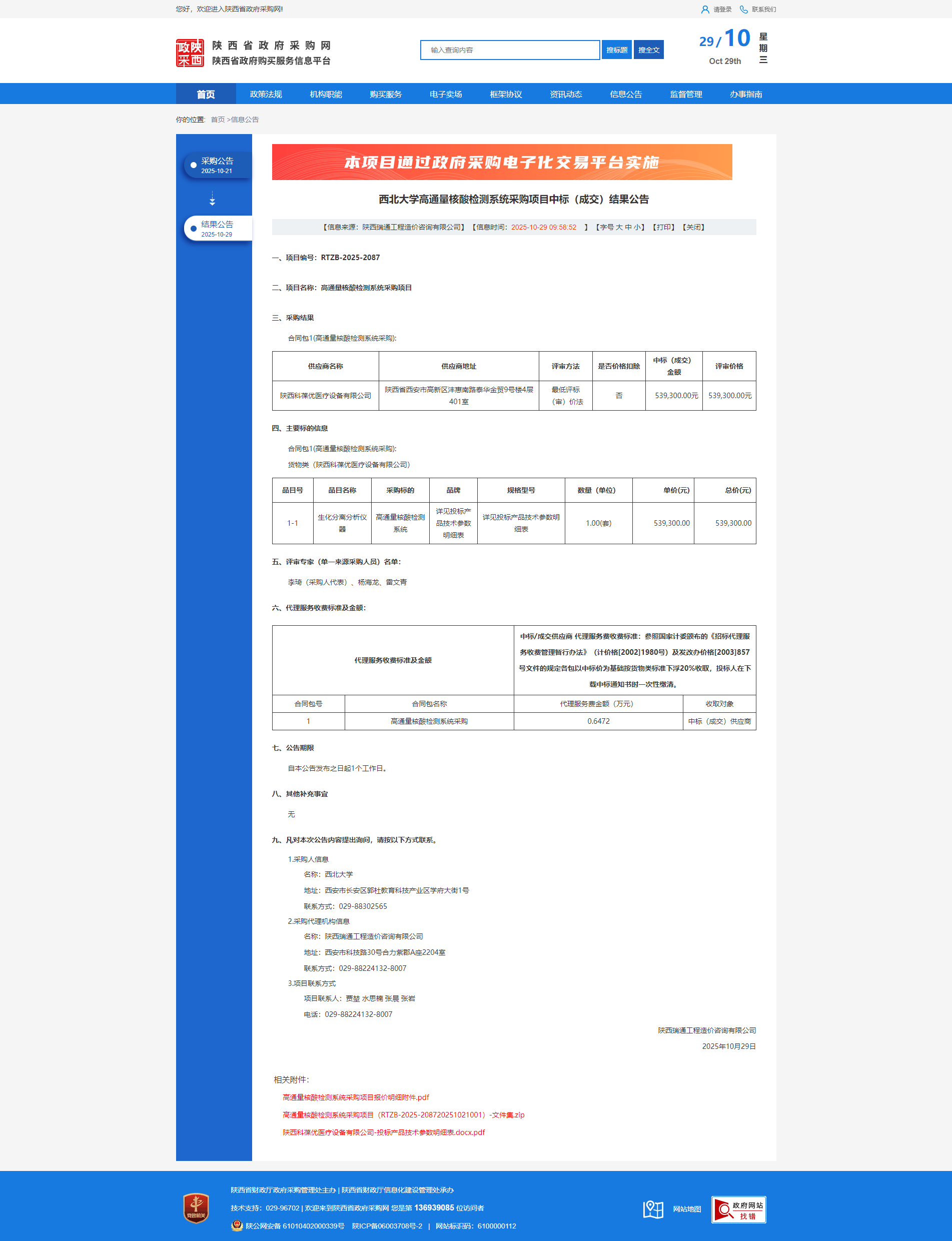 bat365正版唯一官网高通量核酸检测系统采购项目中标(成交)结果公告